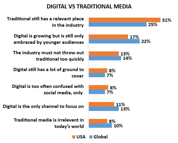 While preference for digital forms of media is high, marketers and advertisers don’t wholly discredit traditional forms of media just yet. 17% of the respondents felt digital is growing but is still only embraced by younger audiences. While 44% felt the industry must not disregard traditional forms of media just yet and that it is still relevant. This sentiment was higher than the global average of 22% and 25% for the respective sentiments.